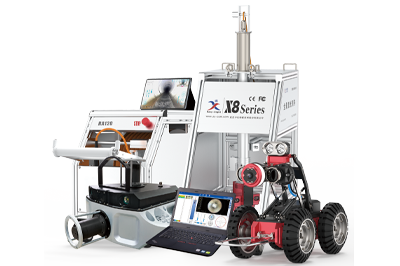 X5-HS4管道CCTV检测机器人由爬行器、镜头、电缆盘、主控等组成。爬行器搭载镜头与电缆盘连接,响应系统的操作命令,如:爬行器的前进、后退、转向、停止、速度调节;镜头座的抬升、下降、灯光调节;旋转镜头的水平、垂直旋转、调焦、变倍;前后视切换等;检测过程中,可实时显示、录制镜头传回的画面以及爬行器的状态信息实时显示、存储高清检测视频,可快速抓取缺陷图片,并以此判断管道内部沉积情况;同时,管道机器人可选配管道侧扫仪、全景镜头,还配有对应的分析软件,能获取管道全景三维模型并输出。