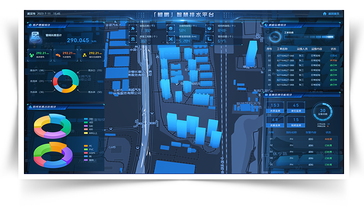 建立完善的管网数据,从管网查、检、修、养、管多个维度,对管网进行全生命周期管理。基于管网GIS分布结合智能检测设备,对管网流量分析、流向分析、溯源分析、对异常情况报警:基于智能设备和互联网技术,完成管网检查、缺陷统计分析、管网修复、管网清淤、巡检运维等多环节对管网施工工程进行精细化管控,做到一网融合共治共享。
