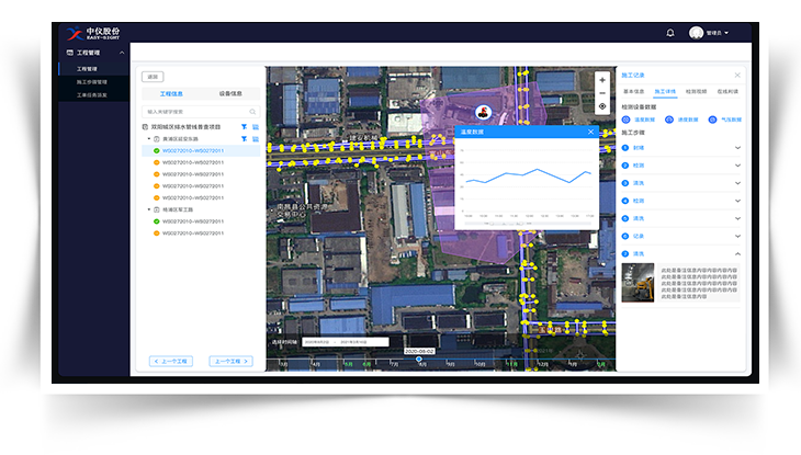 工程管理系统是一种针对管网工程项目设计的数字化管理工具,旨在提供工作效率、降低成本、业务流程化,提高安全性和工程质量,从而实现工程项目的最大价值,整合了管网的检测工程、养护工程、修复工程,为管网提高一套从探测、评估、养护到修复的全生命周期管控,并运用先进的技术手段和管理方法,实现对管网工程的全面监控和管理。