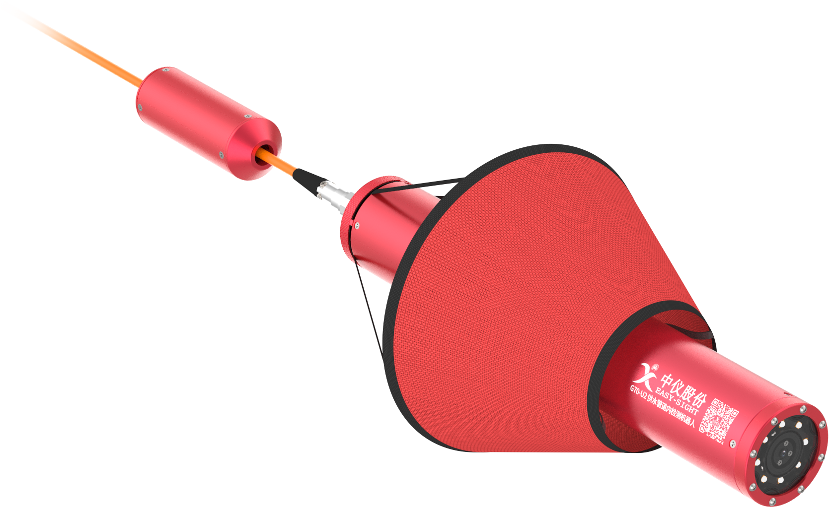 G70供水管道内检测机器人通过插入装置将设备插入到压力管道内,水流推动小型牵引伞拉着传感器在管道中行进。传感器通过电缆与地面设备连接,将获取的管道内部声波与视频信息传回地面控制单元。